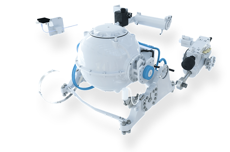 The single-cylinder brake design saves space, weight, and enhances reliability by eliminating hoses and connections. It requires no annual service and incorporates redundant safety mechanisms.